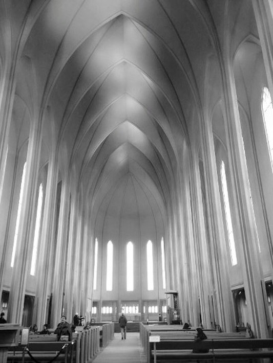 Die Bauzeit betrug ca. 40 Jahre und damit ist die Kirche das Gebäude mit der längsten Bauzeit auf Island. So sieht sie von innen aus: