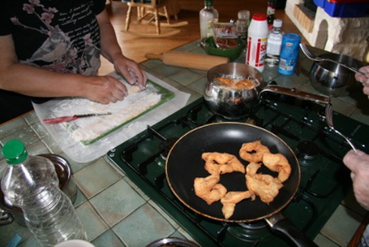Öl, in dem man sie ausbäckt(damit war der Teig aber eindeutig zu flüssig, wir haben noch Mehl dazugetan)