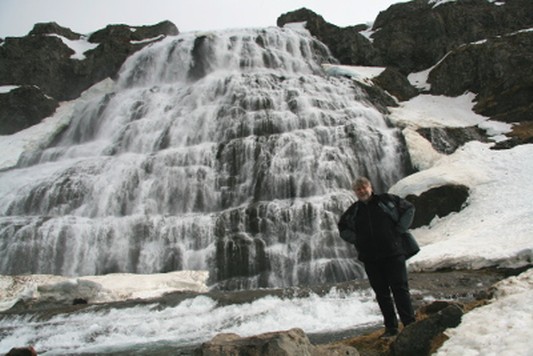 Volker hatte einen Sportanfall und ist bis ganz nach oben zum Dynjandi raufgestiegen. Ich hab mich knie-, konditions- und lustmäßig dafür entschieden, auf halbem Wege zu warten und die Aussicht so zu genießen.