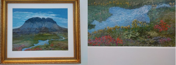 In Blönduós im Textiiilmuseum konnten wir uns später beeindruckende Handarbeiten und alte Techniken ansehen. Hier ein gesticktes Bild, einmal als ganzes und dann ein Ausschnitt daraus: