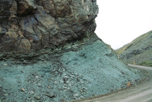 Drangsnes und seine weitere Umgebung haben uns interessante, naheezu abenteuerliche Stunden beschert, dazu wird Volker noch scchreiben. Von mir hier nur wenige Ausschnitte.An manchen Stellen in den Felswänden Islands ist das Gestein regelrecht grün. Ich hab keine Ahnung, was das ist, es handelt sich um recht weicches, brüchiges Gestein und wegen der Farbe vermute ich Kupfer darin, aber ich bin da ganz unbedarft. Jedenfalls ist das interessant anzusehen, hier zum Beispiel: