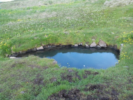 Das allerbeste an Heydalur ist aber eine natürliche heiße Quelle. Das Becken hat ein paar Meter Durchmesser und ist ca. 39 Grad heiß. War wirklich schön, aaaaber: Dafür mussten wir zuerst durch den Fluss. Weil jetzt -
