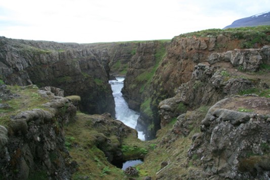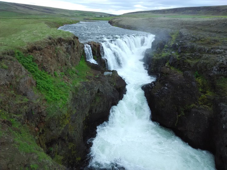 Nach der ersten Nacht auf dem Zeltplatz in Hvammstangi haben wir einen Ausflug nach Blönduós gemacht, um das dortige Textilmuseum zu besuchen.Auf dem Weg dorthin haben wir uns natürlich die Schlucht Kolugljúfur angesehen, die nach dem Trollweib Kola benannt ist. Sie soll sie gegraben haben. Dort gibt es auch diesen imposanten Wasserfall: